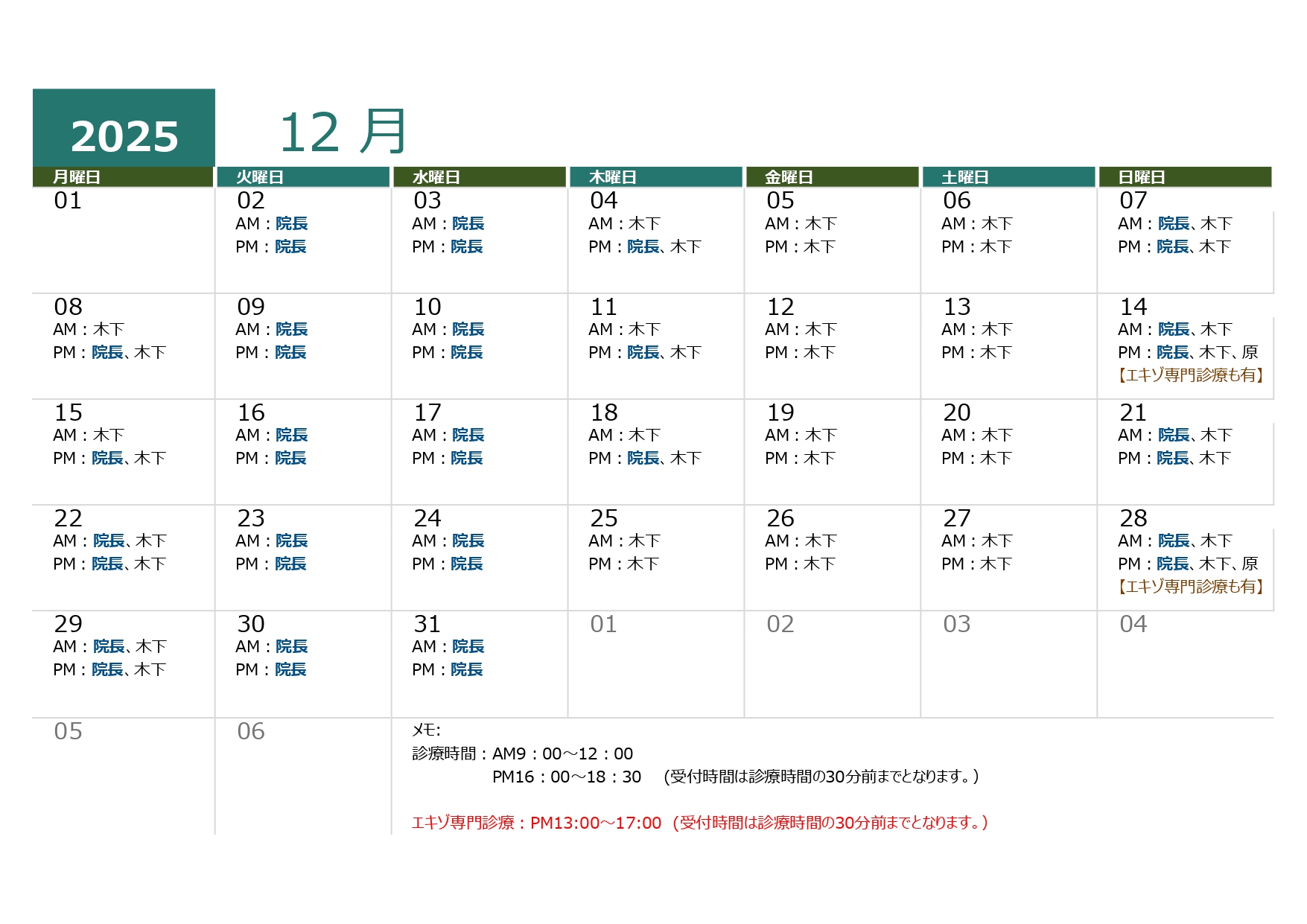 12月の診療のご案内